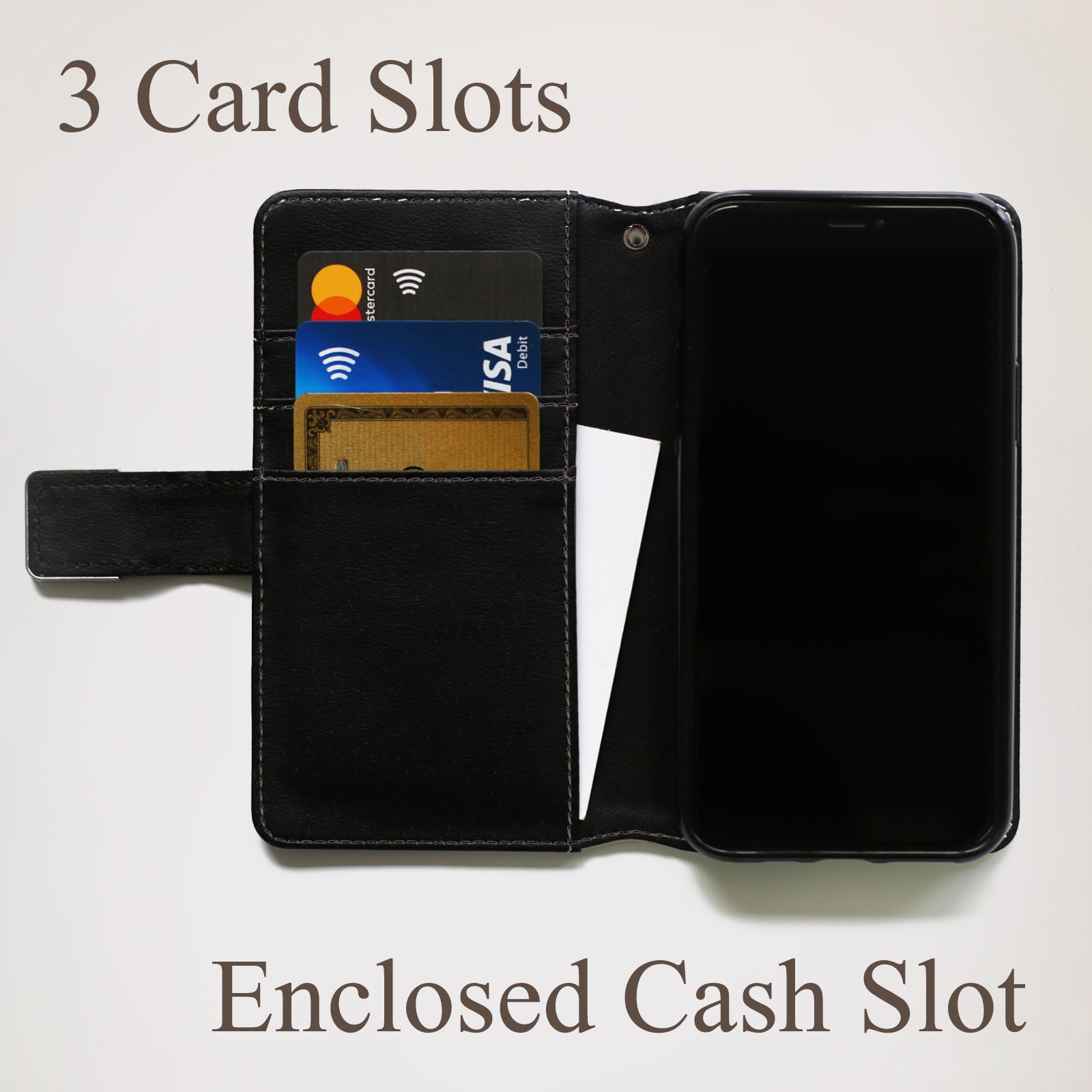 Protect your Samsung and make a statement with this high-quality personalised leather wallet phone case. Featuring card slots for convenience, a folding stand for versatility, and a magnetic clasp for added security. Plus, the high-quality print adds a touch of personalization to make it truly unique!